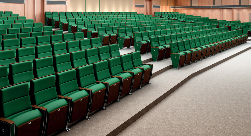 • 適用在禮堂、影劇院、會堂、報(bào)告廳等場所,在開會和看演出時(shí)應(yīng)有良好的視線,應(yīng)便于維修和清掃,使用時(shí)應(yīng)舒適,使人不易疲勞。根據(jù)使用和現(xiàn)場的設(shè)計(jì)需要,會堂的座椅需要放置文件和供記錄用的書寫板,特殊的會堂還要求考慮與同聲翻譯設(shè)備和表決、發(fā)言設(shè)備相結(jié)合。查看產(chǎn)品
